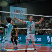 Aber Düren steigert sich, weil es ab dem zweiten Satz sicherer gegen den Giesener Aufschlag steht. Schon früh ist das Team von Christophe Achten auf 6:3 weg. Allerdings kassieren die SWD powervolleys anschließend vier Punkte in Folge, weil die Grizzlys in Block- und Feldabwehr zur Stelle sind. In der Satzmitte stellt Düren dann aber auf Sieg um. Den ersten wichtigen Punkt setzt Robin Baghdady mit einem Block. Dann kommt der erste starke Moment des im ersten Satz eingewechselten Zac Hutcheson. Er bleibt beim Gegenangriff aus dem Hinterfeld aus schwerer Situation mutig und markiert das 15:13. Zum 21:18 ist der Kanadier im Block zur Stelle. Dann beendet Düren den Satz mit zwei Blockpunkten in Folge.
