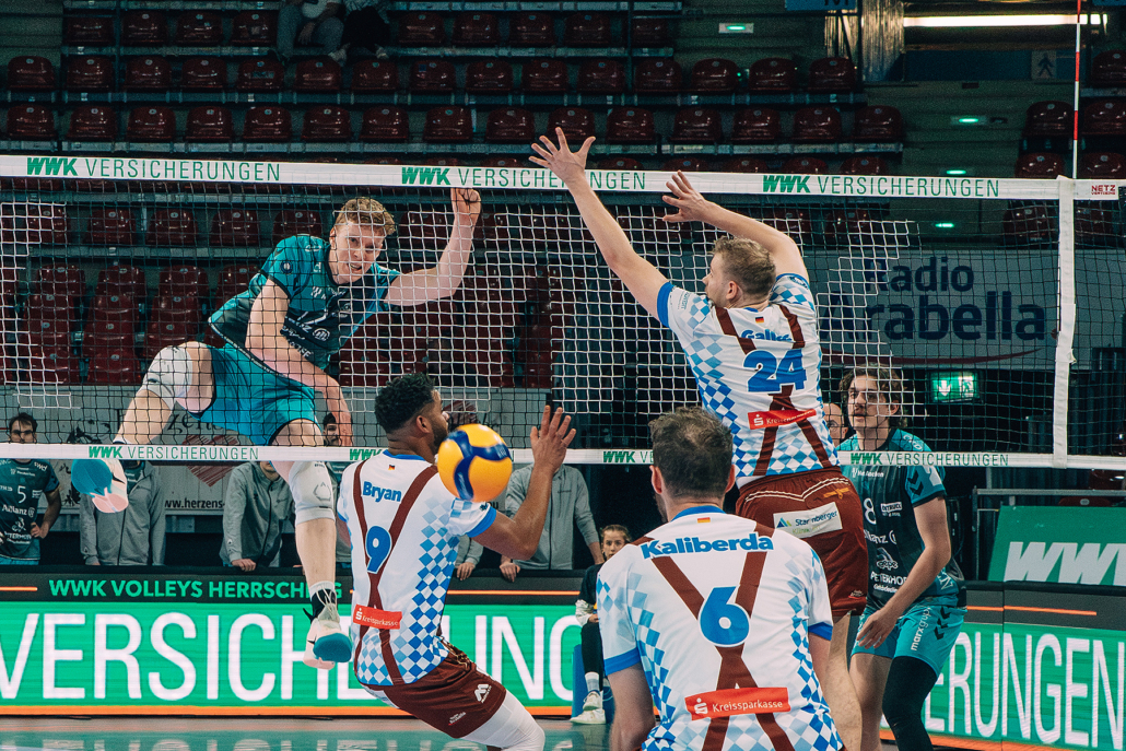 Zu Beginn des dritten Satzes führt Herrsching erstmals mit zwei Punkten beim 3:1, weil die Düre-ner Abstimmung nicht stimmt und die Gastgeber das bestrafen. Es sollte die einzige Zwei-Punkt-Führung des Abends für die WWK Volleys bleiben. Robin Baghdady schlägt dreimal stark auf, sein drittes Service ist ein As zum 6:4. Der Außenangreifer kontert danach auch die zwischenzeitliche 11:10-Führung der Gastgeber mit dem nächsten Ass zum 14:12. Danach übernimmt der einge-wechselte Ryan Poole im Dürener Spiel. Zum 17:13 gewinnt er ein Drückduell am Netz, zum 20:16 hat er ein Ass im Ärmel. Die endgültige Entscheidung bedeutet ein Block von Siebe Korenblek zum 24:19.
