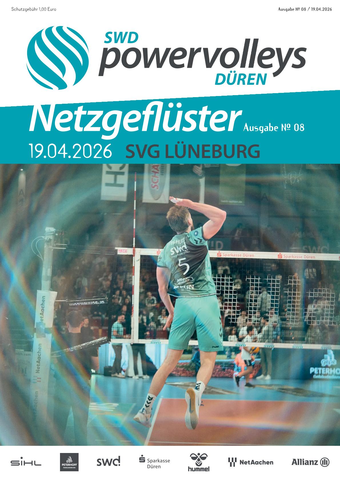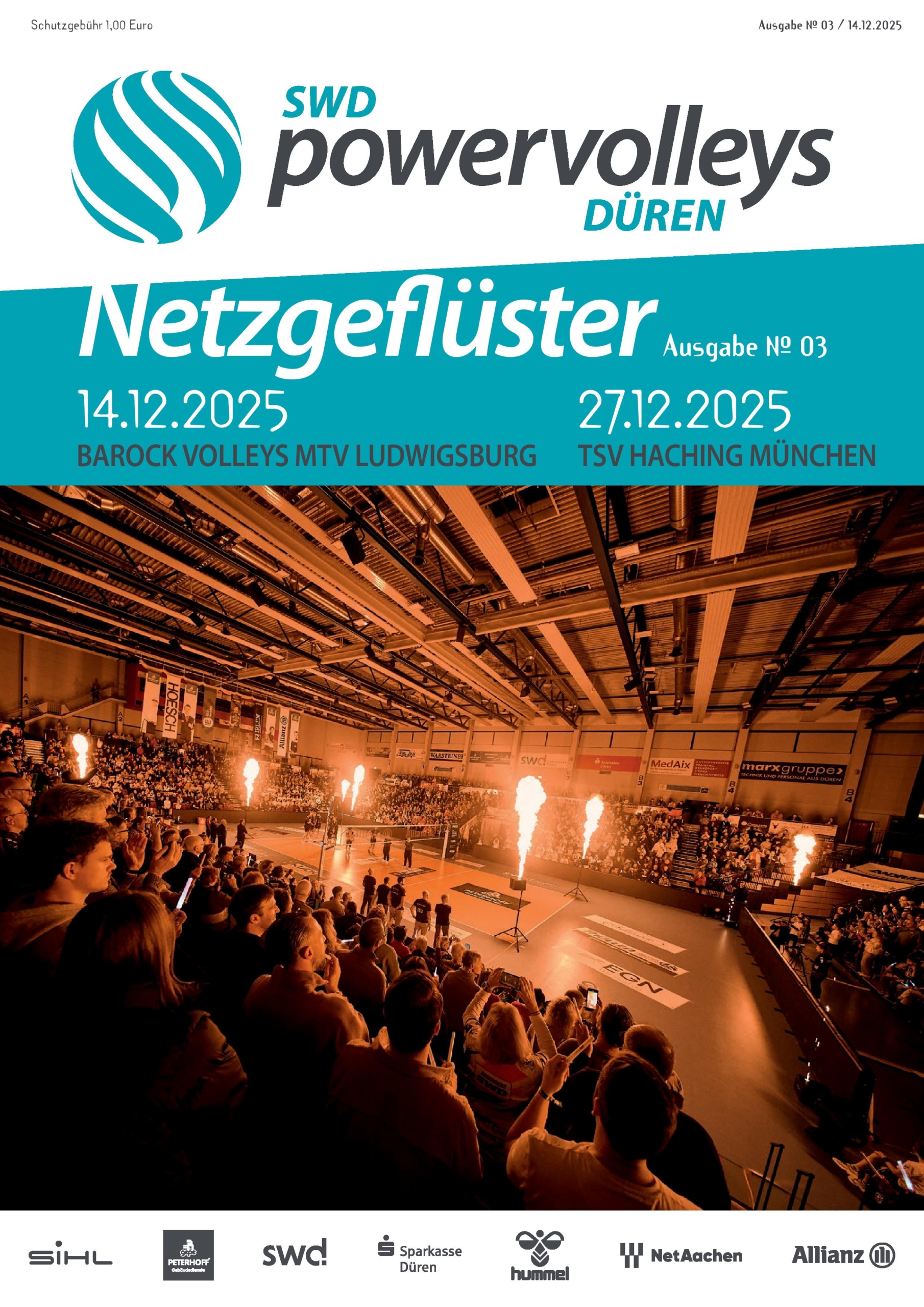 Das Netzgeflüster ist ein Magazin mit 36 Seiten im DIN-A4-Format. Damit das Netzgeflüster auch im Netz verfügbar ist, bieten wir die bisherigen Ausgaben hier als PDF-Dokumente zum Download an. Die gedruckten Hefte erhältst du beim Heimspiel in der Arena Kreis Düren.